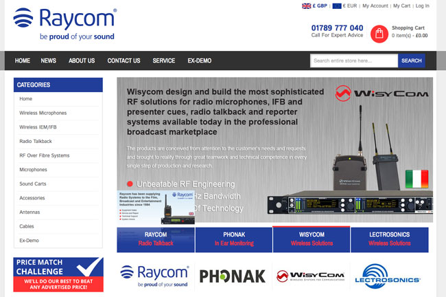 Whilst being the new shop front of Raycom, the new site continues to provide a wealth of information on their product ranges from world renowned manufacturers such as Wisycom, Lectrosonics and Phonak alongside their own radio talkback base station the RTB6211D.