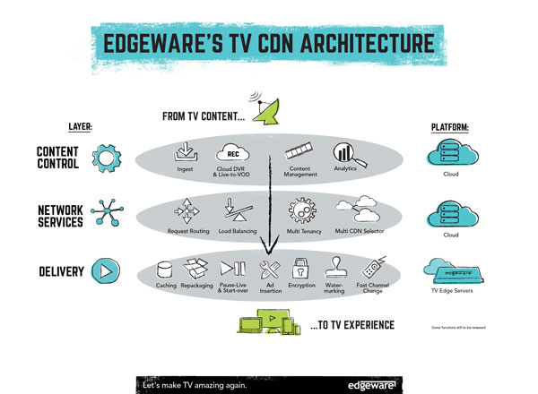 Edgeware has announced that it will use IBC2016 to demonstrate to broadcasters, content owners, network operators, cable companies and OTT providers how its unique and scalable three-layer architecture, designed specifically for TV, will deliver services with no delays, buffering or glitches.