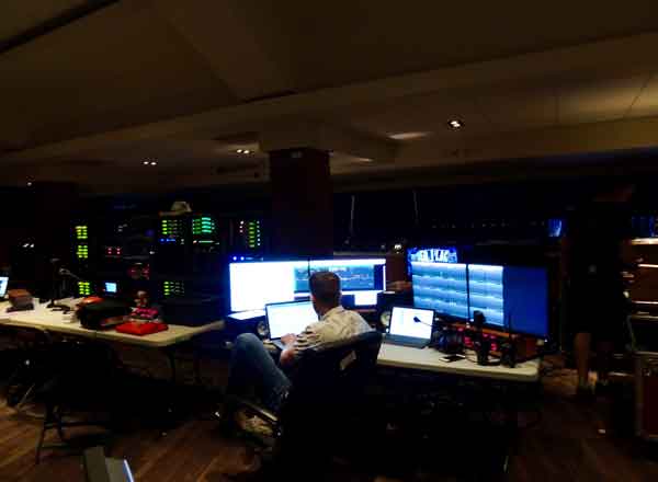 A total of 20 integrated Transceiver Antennas and 25 wireless beltpacks were allocated to cover the MSG venue. The Clear-Com FreeSpeak II product is capable of operating in both the 1.9 GHz and 2.4 GHz bands. FreeSpeak II wireless intercoms are particularly welcomed in crowded RF spaces like the VMAs. The per-user configurability of the FreeSpeak II wireless beltpack means that Firehouse can put each stage manager on a common channel, and then configure each beltpack's remaining four channels to connect to whatever groups they are associated with.