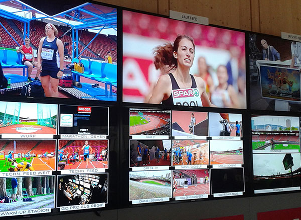 In Berlin, a 2160p100 HLG/BT.2020 production workflow will be set up in collaboration with EBU Members BBC, France Télévisions, IRT, RAI and ZDF, and a range of technology partners. The 2160p100 feed will be used to derive two additional 1080p100 and 1080p50 signals. These three feeds will then be encoded in HEVC and multiplexed for a live transmission via the Eurovision satellite network to RAI's experimental test bed in the Aosta Valley, Italy, and via the Eurovision Fibre infrastructure to the European Championships Broadcast Operations Centre (BOC) based at BBC Glasgow.